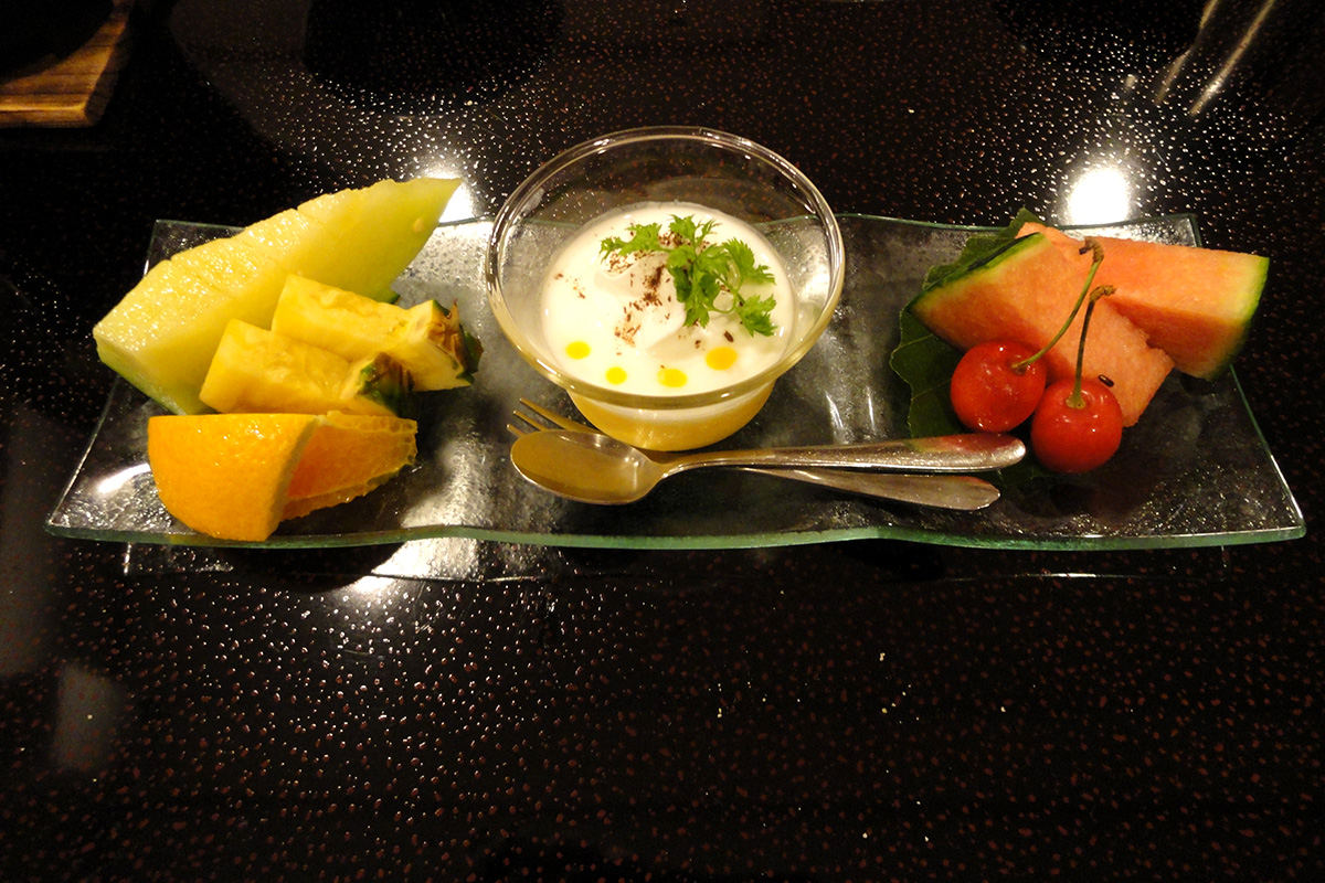 | 食事は全部で11点、お品書きが無かったので詳しい料理名は分かりませんが、ボリュームは有りお腹一杯いただきました。内容は可もなく不可もなくという感じでした。その中でも特にしゃぶしゃぶと天ぷらは美味しかったです。 | ||