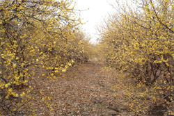 ここだけに行くのはもったいないので、近くにある見ごろを迎えた「ろうばいの郷」に先に寄る事にしました。上信越自動車道の松井田妙義I・Cから車で約10分、まわりに何も無い畑の中に「ろうばいの郷」はあります。駐車場はすぐ前に60台分程あり、少し離れた所に100台以上止められる場所があります。駐車場は無料なのですが、入場料として一人300円必要です。最初は安いなと思っていましたが、中に入ってみると「おや・・・!意外と小さい」。写真を撮りながらゆっくり見てまわったつもりでしたが、30分もかかりません。これで300円は安いのか高いのか微妙です。本当に好きな人には安いんでしょうね。