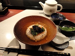 定山渓温泉街中心から車で2・3分の少し離れた静かな場所に、この日の宿泊ホテル「翠山亭倶楽部定山渓」はあります。 今年6月の旅行に続いて2度目の宿泊です。小樽観光を予定に入れた時点で、またあの「鉄板焼」を食べて静かなホテルに泊まりたい、という事で決めました。この日はホテルの敷地に車を入れると従業員の方が玄関前に待機していて出迎えてくれました。その方に名前を告げると「以前フラノ寶亭留にご宿泊になられましたか」と聞かれました。確かに去年の6月には宿泊しています。翠山亭とフラノ寶亭留は同じ第一寶亭留グループで最近転勤されて来たようです。顔と名前を覚えていて頂いたらしく、とても感激してしまいました。 今回泊まった部屋は56uの和洋タイプです。前回泊まった特別室の半分位の広さですが、この位でも十分だと思います。ホテルへのチェックインは16時で夕食は18時30分からなので時間はタップリあります。温泉に入ったりしてゆっくり出来ました。 夕食の時間になったのでグリルダイニングへ向います。前回は先客が1組居ただけだったのですが、今回は既に3組が食事中でした。内容は食前酒・前菜・お椀・魚料理・箸休め・肉料理・御食事・デザートの順で出されました。主な物は下の写真を見て下さい。味はやはり前回同様最高です。厳選された旬の食材を目の前で丁寧に調理し出してもらいます。特に2種類の肉は絶品で、これを食べる為にこのホテルを選んだと言っても過言ではありません。御食事は私が前回と同じガーリックライスで、妻は焼おにぎり茶漬けをお願いしました。私はガーリックライスの香ばしい味が忘れられず、妻は前回とは別の味を楽しみたいという事で別のメニューになりました。焼おにぎり茶漬けは出汁が効いていて美味しかったらしいです。 食事を終えて部屋の戻り、少し休んだら今度は内風呂に入ります。檜の香りがとても良く、大浴場とはまた違った雰囲気で良いもんです。テレビの天気予報では明日は雨、豊平峡での紅葉見物が心配です。 翌朝は目が覚めた時から細かい雨が降っていました。天気の具合を見ながら予定を再検討です。朝食は7時半から懐石ダイニングでの和食です。前回同様おかずの種類が多く、それだけでもお腹が一杯になってしまう量です。とは思っていても、実際食べ始めると御飯をお替りするほど美味しく頂きました。 雨は相変わらず少しですが降り続いていたので、当初予定していた洞爺湖や支笏湖へ行くことは諦め、豊平峡だけにする事に決めました。そのお陰でチェックアウト時間を8時半から9時半にする事が出来、ゲストラウンジや部屋で朝をゆっくり過ごす事が出来ました。 | ||||||