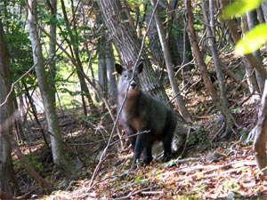 後を追って行くと、それはニホンカモシカでした。この辺にも生息している事は知っていましたが、まさか見ることが出来るとは思ってもいませんでした。それも10m位の距離です。カモシカを見るのは2回目で前回雨飾山で見たときは、谷を挟んで遠くだったのでこんなに近くで見られてビックリです。 |