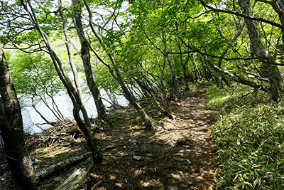 【10:40】 下山開始 登って来た方とは逆に南側へ下山します。北側とは全く異なり、ガレ場の道で傾斜もキツイです。山頂から一回下ると河原の様に広い場所に出て、そこからもう一回下ると傾斜は緩くなります。 【10:52】 赤城小沼 登山道が平らになり、少し歩くと赤城小沼の湖畔に出ます。駐車場は丁度反対側なので小沼を半周する必要があります。左右どちらからでも行けますが、小沼湖畔の砂浜を歩ける右の北回りで行く事にしました。小沼越しの地蔵岳も見えて正解だった様です。 【11:10】 赤城小沼駐車場へ無事帰還 小沼の畔は少し低くなっているので、駐車場に戻るにはほんの少し登る必要があります。駐車場はすでに満車で、白線の所以外にも車が止まっています。尚且つ空き待ちの車も有るほどでした。 |