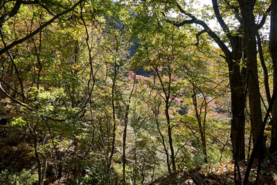 【10:05】 御堂山山頂到着 ここの山頂は狭くは無いのですが、周りは木で覆われ展望は無いのでそれ程長居する所ではありません。でも1ヶ所木の隙間から妙義山が見える所がありました。葉が全部落ちたらもう少し良く見えるのかもしれません。 【10:25】 下山開始 山頂で20分位休んで下山を開始します。登りで苦労した急登は、下りでも滑らない様に注意します。途中色付いた紅葉を見ながら、みの滝まで一気に下山し岩の下で少し休憩します。この先は傾斜が緩やかになるので登山口までのんびり歩きます。 【11:35】 御堂山登山口 下山開始から1時間10分、登山口に戻って来ました。 【11:38】 駐車場スペースへ無事帰還 朝スタートの時は1台だった車は、7台まで増えていました。 |